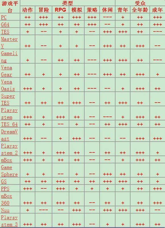 在开发阶段的前期,选择合理的游戏受众,游戏类型,平台非常重要,具体的相符性:如下图所示,大家可以考下: