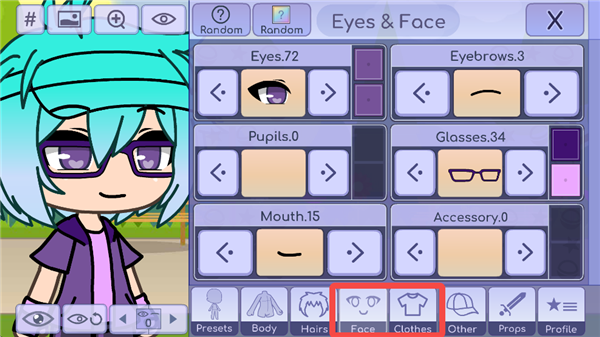 5、接下来的对脸【Face】、服装【Clothes】进行设置。