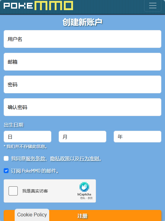 pokemmo手游账号注册官网链接:https://pokemmo.com/zh/account/