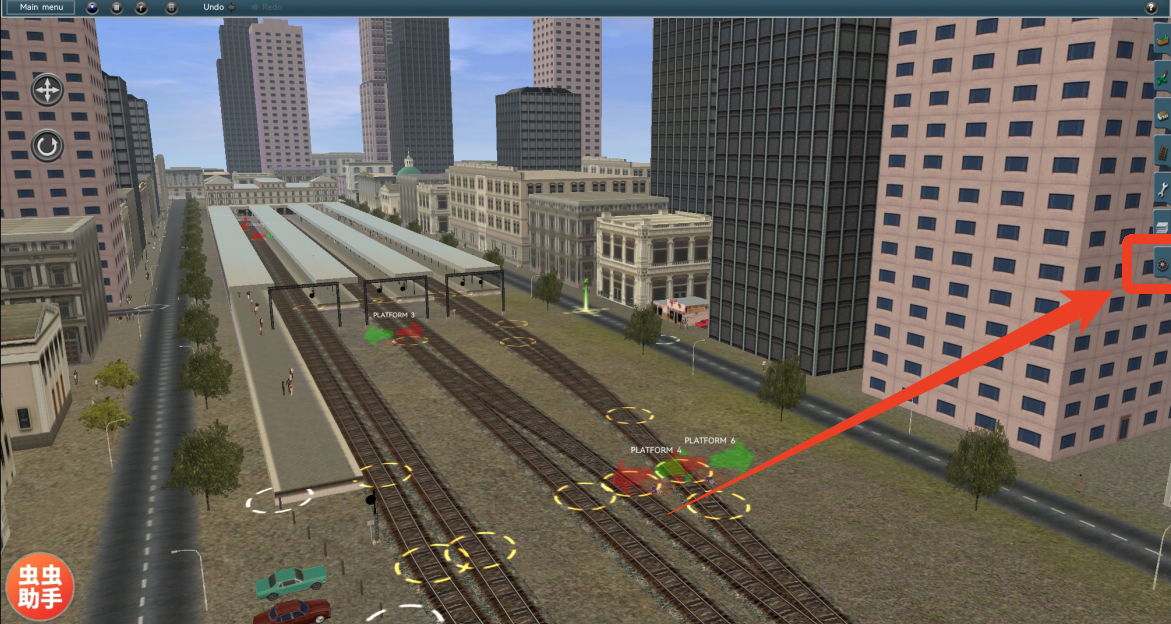 4、进入到地图后,点击右边最后一个按钮,选择列车模组。