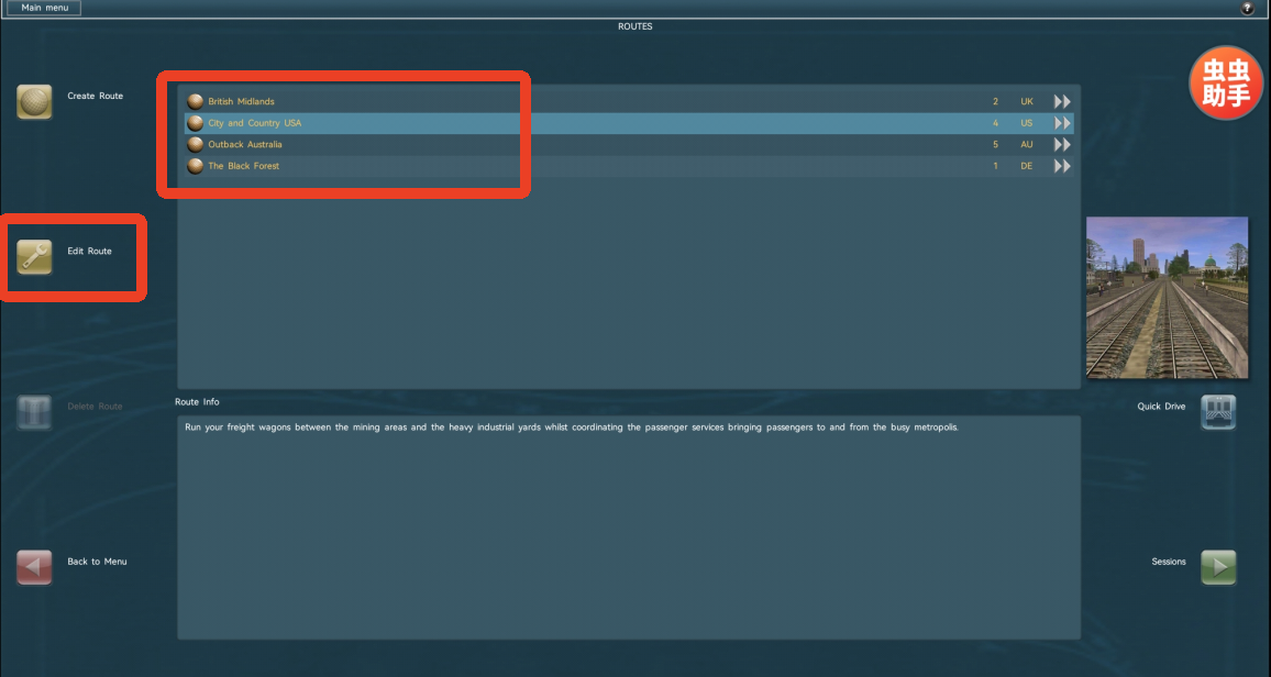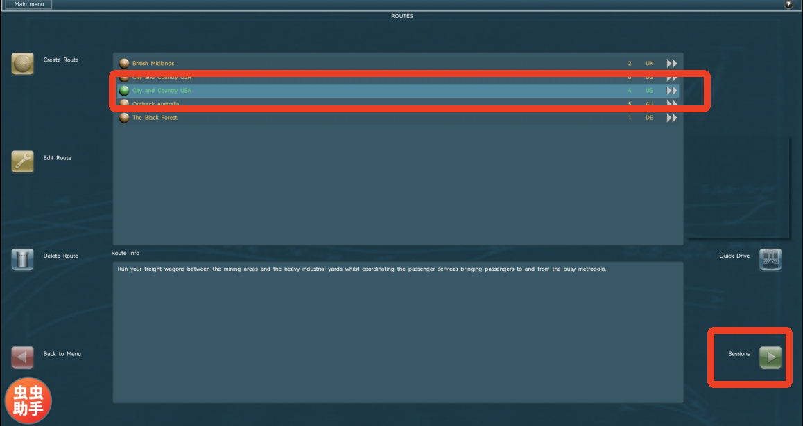 7、返回到【ROUTES】,选择绿色名字添加模组,点击右下角的【Sessions】,再点击【Drive Session】就能开始游玩了。