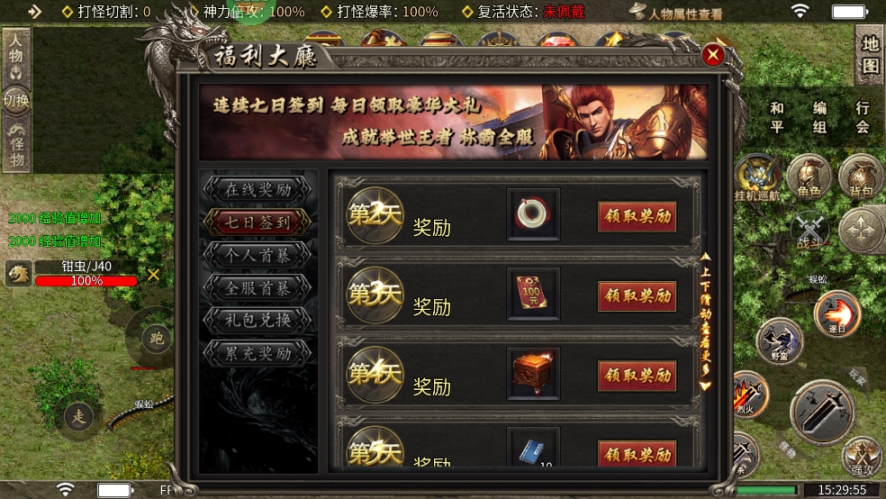 3、进入游戏后,系统会发放见面豪礼,记得及时领取。