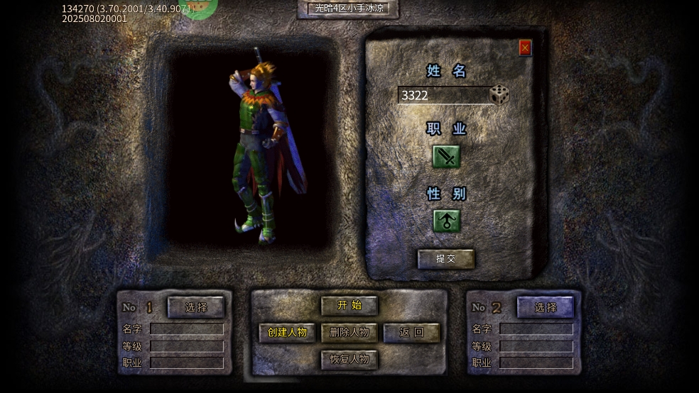 2、进行角色信息创建,需设置角色的性别、职业,并为角色输入姓名。