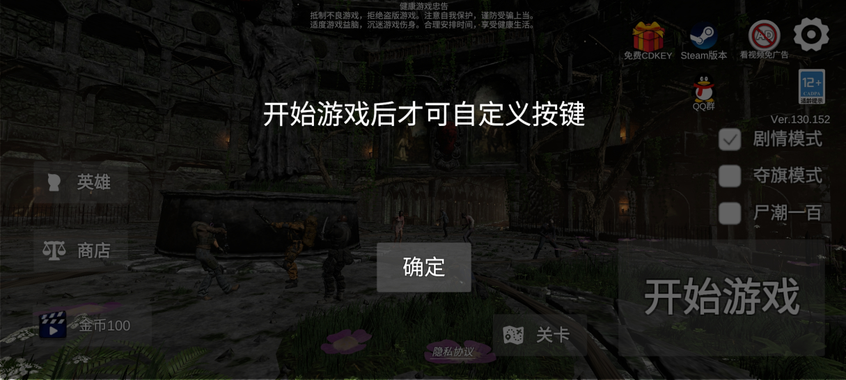 3、有一点需要注意的是,要开始游戏才能自定义按键。