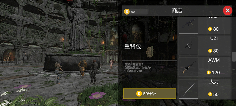 2、我们进入游戏前,先购买装备起,点击左下角的商店可以购买武器、装备;