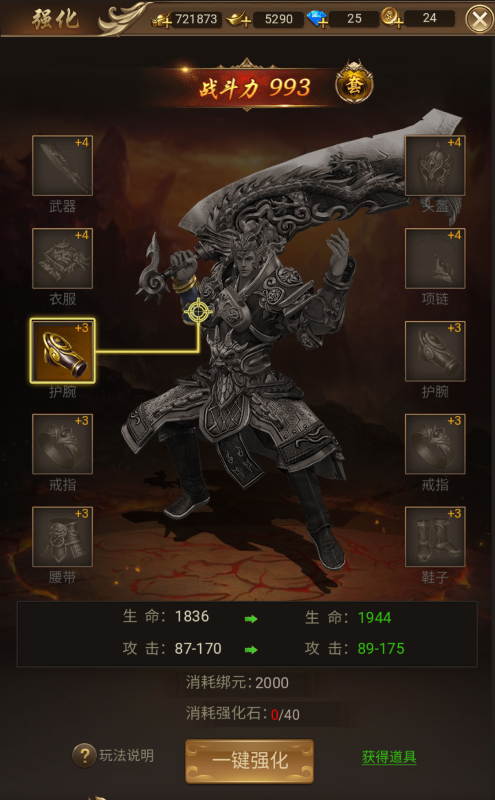 6、强化系统更像强化相应的武器槽,与武器无关,前期只需要消耗少量绑元,可以直接提升。