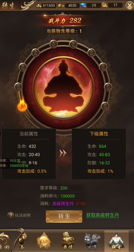 8、转生是必不可少的,提升属性倒是其次,更高的转生可以进入更高等级的地图,这个是必升无疑。
