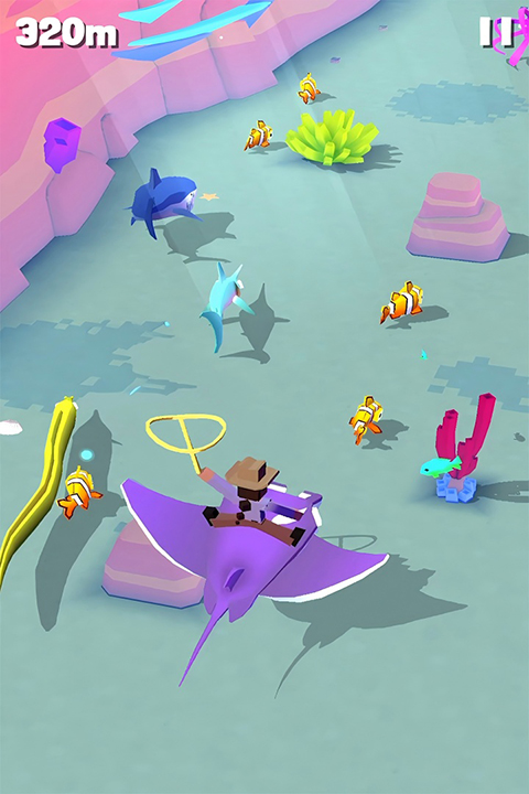 游戏的跑酷玩法是非常讲究操作和走位的,玩家既要躲避障碍不断前行,又需要动手去抓各种动物延续骑行时间;手和脑并用,过程紧张刺激又不失乐趣。目前,游戏中已有80多种动物,即有大家耳熟能详的家禽野兽,又有珍稀罕见的传说级神兽,他们将不断刷新你的捕捉欲望。