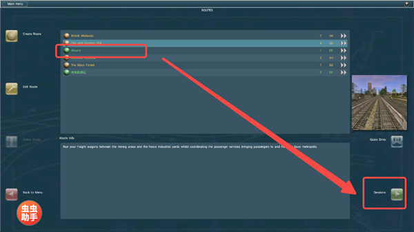 8、返回【ROUTES】页面,找到刚才保存的地图,点击右下角【Sessions】进行游玩。