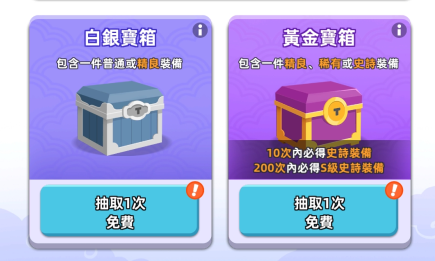 5、珍宝阁最底下的白银宝箱和黄金宝箱会赠送两次免费的机会,有一定的几率可以抽到S级装备。