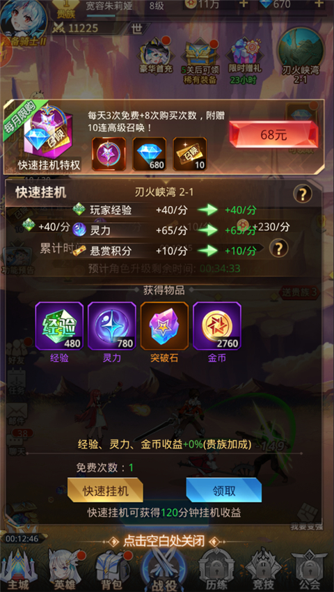 最重要的[挂机收益]可别忘记每天上线领取哦