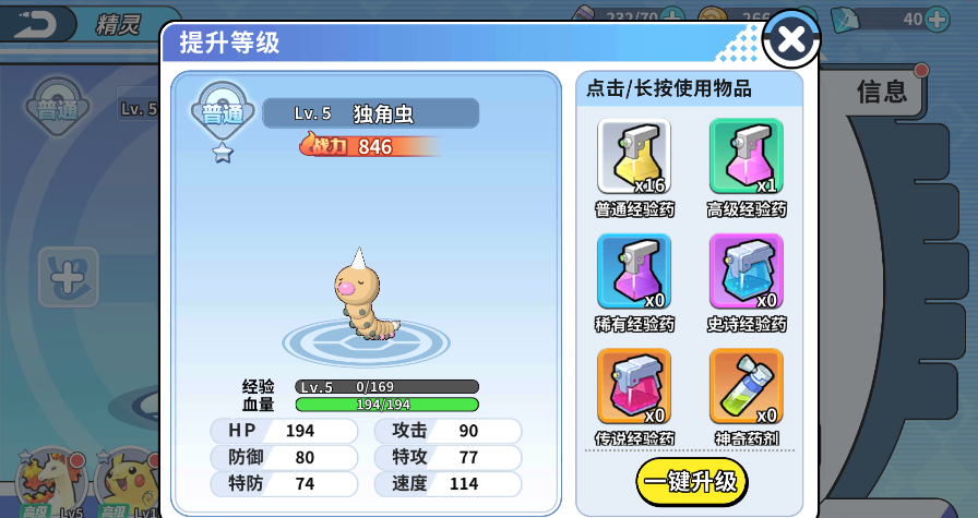 3、提升精灵的等级也是最直接的方法,通过战斗或者使用经验道具可以使得宠物获得升级。
