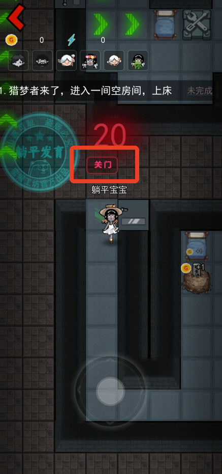 2、在猎梦者倒计时之前需要赶快找一间房躺下,进房后记得关门。