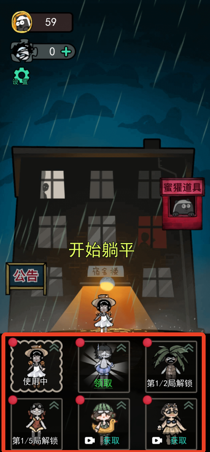 1、点击主页面的开始躺平之后就会开始匹配玩家,等人数到达了六人就能开始游戏。