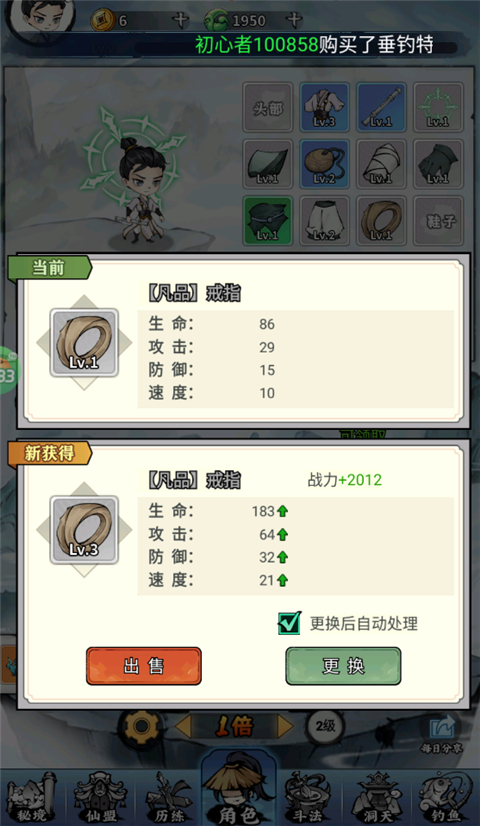 2、当获得低属性的装备进行分解,相反直接装备即可。