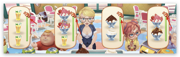 细心地玩家可能已经发现了,在文中的第一张图中,已经把糖给了顾客,所以,才能放肆的进行“连连上菜”!