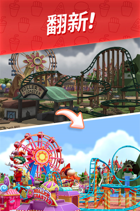 4、不断解锁新餐厅提升你的烹饪技能;闯过不同目标的关卡获得奖励来翻新和建设你的餐厅。