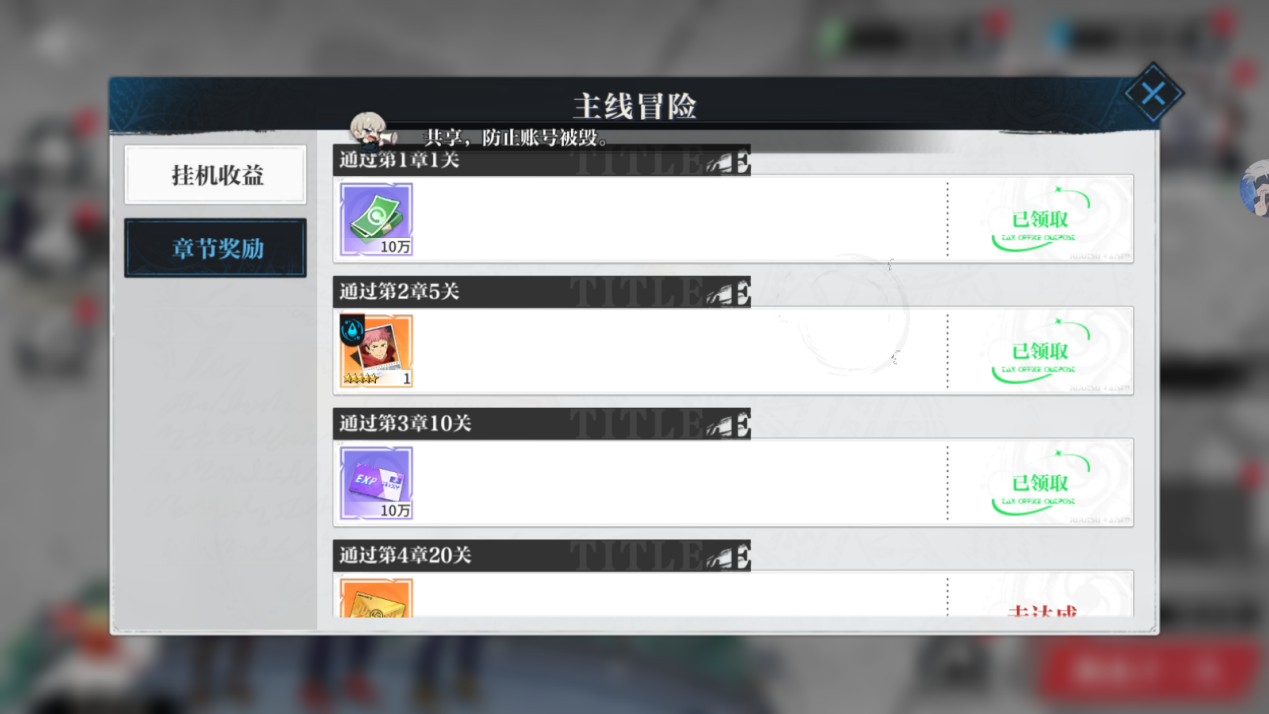 3、主线总共有14个章节,通关对应的章节均可获得相应奖励。