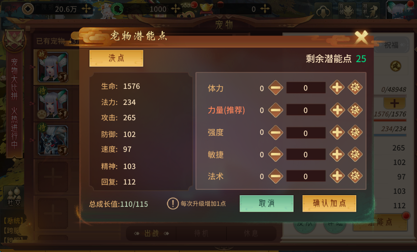 6、需要注意的是,宠物升级不会自动加点,需要玩家手动加点。