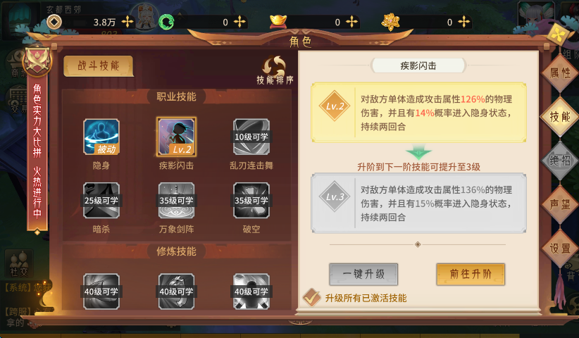 3、提升角色的技能并不会增加太多战力,却可以有效提升角色在战斗中的战斗能力。