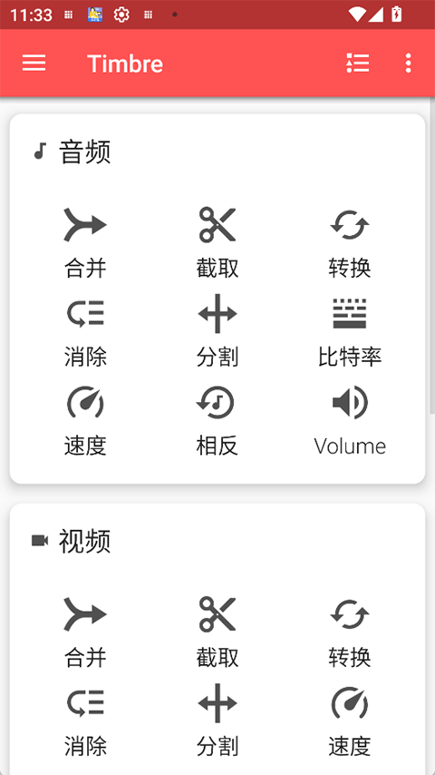 Timbre安卓版是一款功能强大且设计精简的多媒体处理工具,它集音频与视频的剪切、合并、转换及拆分功能于一体,支持 MP3、WAV、MP4、MKV 等几乎所有主流格式。该应用最核心的优势在于“无损处理”,能在极短时间内完成任务而不损害原片质量。此外,Timbre安卓版还提供视频提取音频、制作 GIF、调整播放速度及文本转语音等进阶功能。凭借其遵循 Material Design 的纯净界面和完全免费、无广告干扰的体验,Timbre安卓版成为了短视频创作者和音频爱好者高效处理素材的必备神器,让复杂的编辑任务在安卓手机上也能瞬间完成,有需要的用户可以在本站免费下载使用。