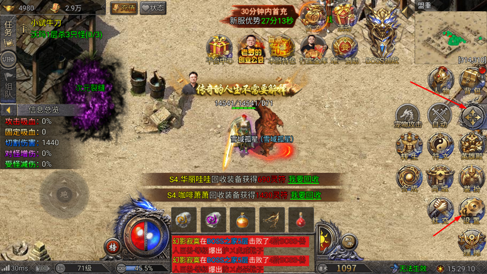 2、游戏内自由PK,打怪爆装,更有羁绊技能三倍伤害;