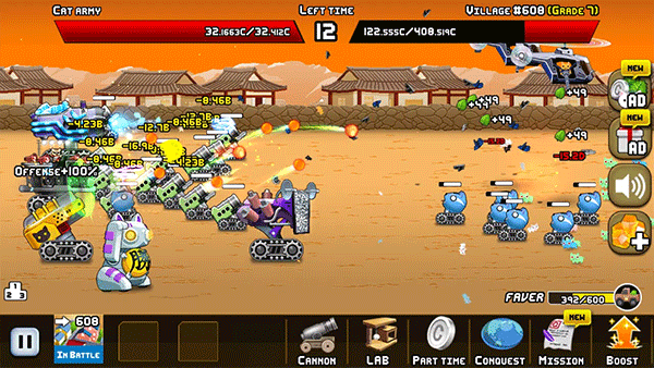 创建自己的火炮并升级以使其更坚固,通过制造巨型炮兵来建立一支实力更强的军队。