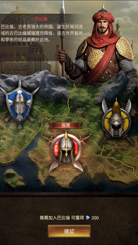 游戏内共有三个阵营,分别为巴比伦,欧罗巴和亚细亚。