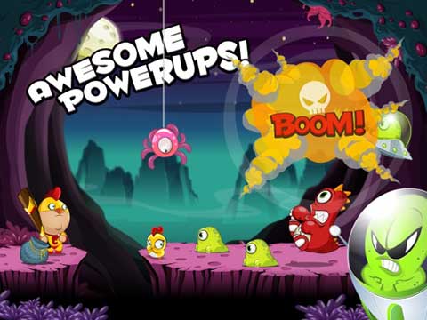第9关:这一关之前又会出现金币奖励哦!只要使出3次满力一击,就会有1000金币的奖励!随后我们进入关卡,这一关会出现飞行速度非常快的红色飞行怪物,而且它叼走小鸡后非常难攻击到,大家要注意哦!同样的,也会随机出现炸弹武器,所以地面上的怪物威胁性要小一点!
