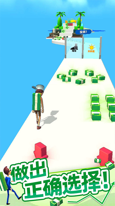 这款游戏听起来挺有意思的!它让玩家在虚拟世界里通过简单的操作就能赚取美元奖励,感觉既轻松又有趣。游戏的玩法主要是操控人物自动前进,碰到路上的美元进行投资,完全靠运气和随机选择。这种随机性让我有点紧张,但也很刺激,不知道能不能赚到大钱。