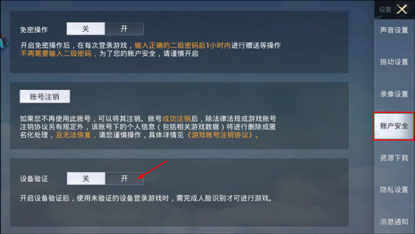 1、首先打开云游戏,进入游戏后点击右下角箭头打开设置,然后点击账号,开启设备验证,点击“ 前往验证”。