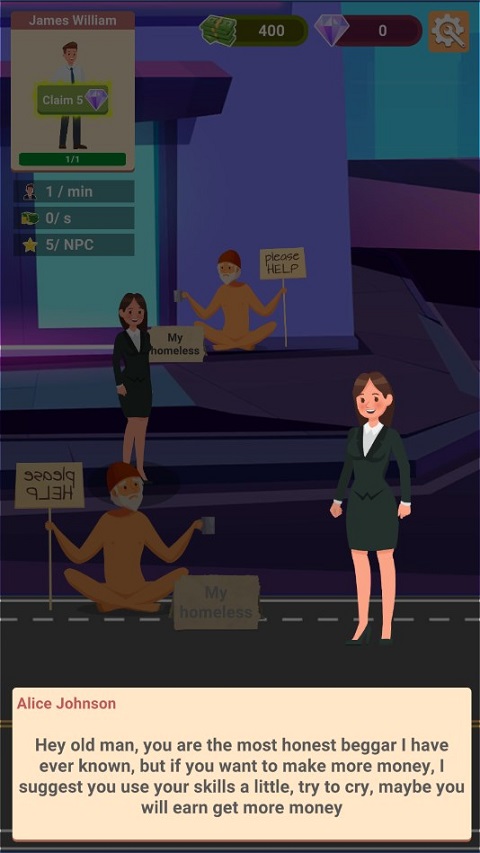 无家可归的生活体验最新版是一款有深度的人生模拟类手游,英文名也叫Homeless Life,在这里原本身为顶尖人才的您却因为各种原因,沦落为“乞丐”,为了谋生,你需要不断地打工赚钱,解决自己的衣食住行。
