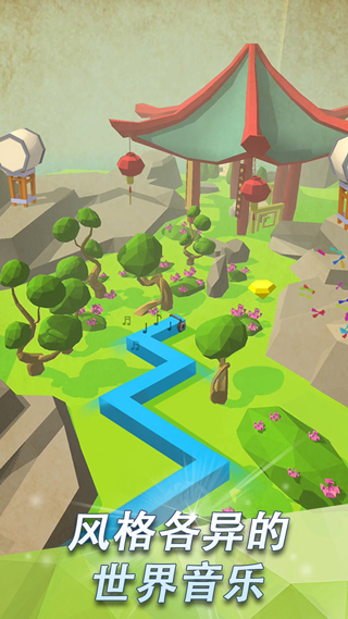 总结:仔细聆听音乐,指引线条通过:多重地形。点击屏幕完成转向,躲避障碍,在多变的地形中到达终点。