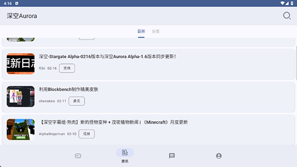 深空Aurora是一款专为我的世界游戏玩家所打造的手机工具管理软件,因此也被叫深空我的世界盒子,盒子能够给各位玩家提供各种精美的地图、皮肤和模组资源下载,让你的游戏体验更加丰富精彩,同时软件还提供了强大的编辑器功能,让玩家可以根据自己的想法自由创作游戏内容,打造一个专属于你自己特色的游戏世界。