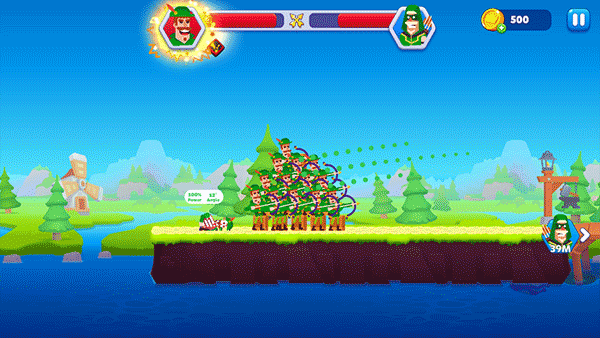 1、杀死敌方弓箭手以达到下一级,玩家还可以招募更多士兵进行攻击