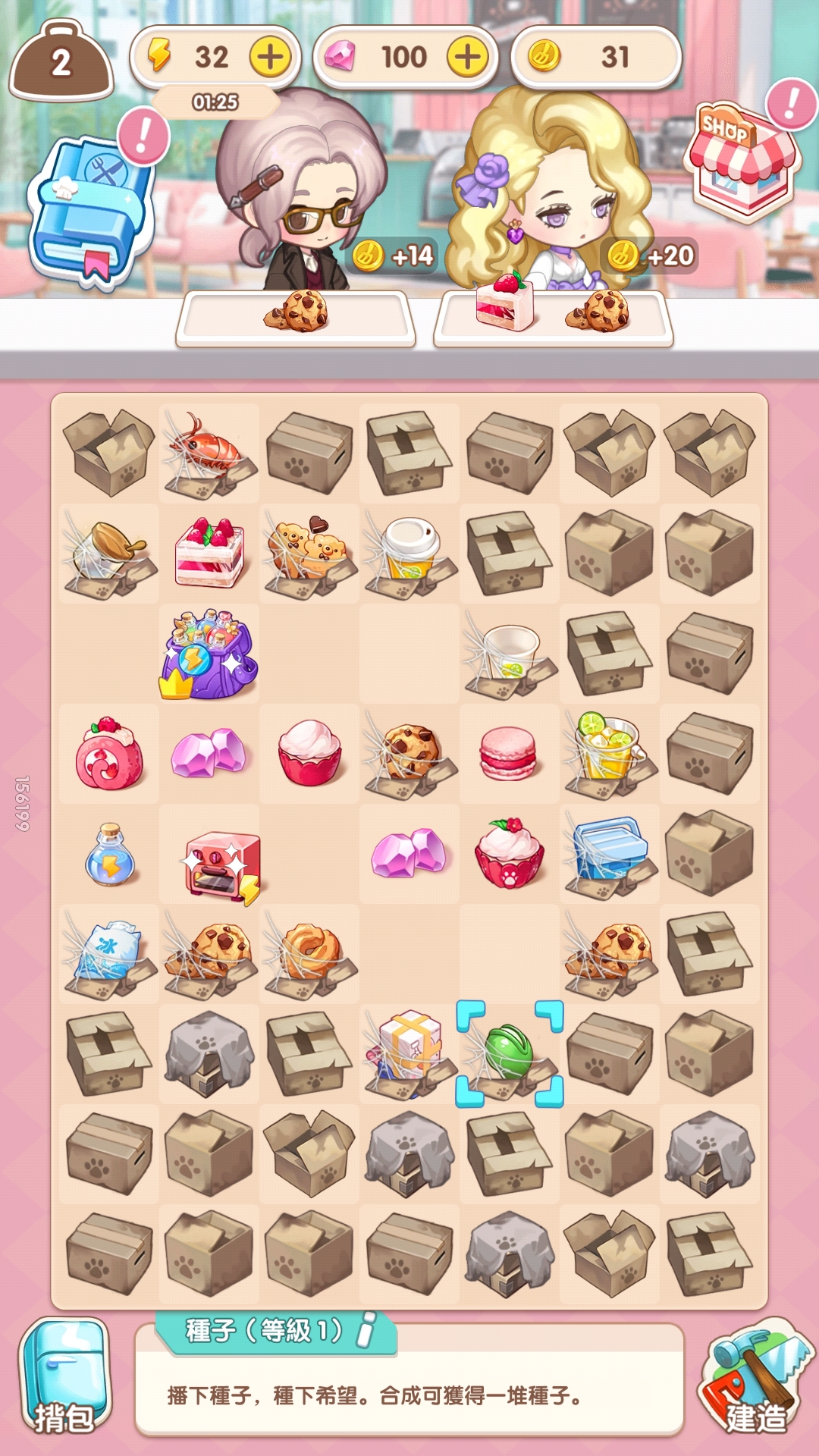 在动态棋盘上,合成食材,烹饪绝美料理,吸引众多客人前来品尝。