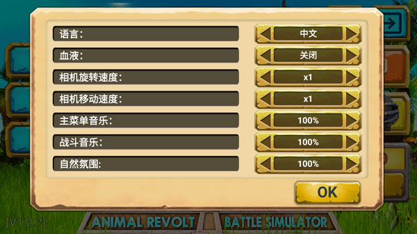 1、打开动物战争模拟器,点击左上角设置按钮,然后点击语言切换成中文;