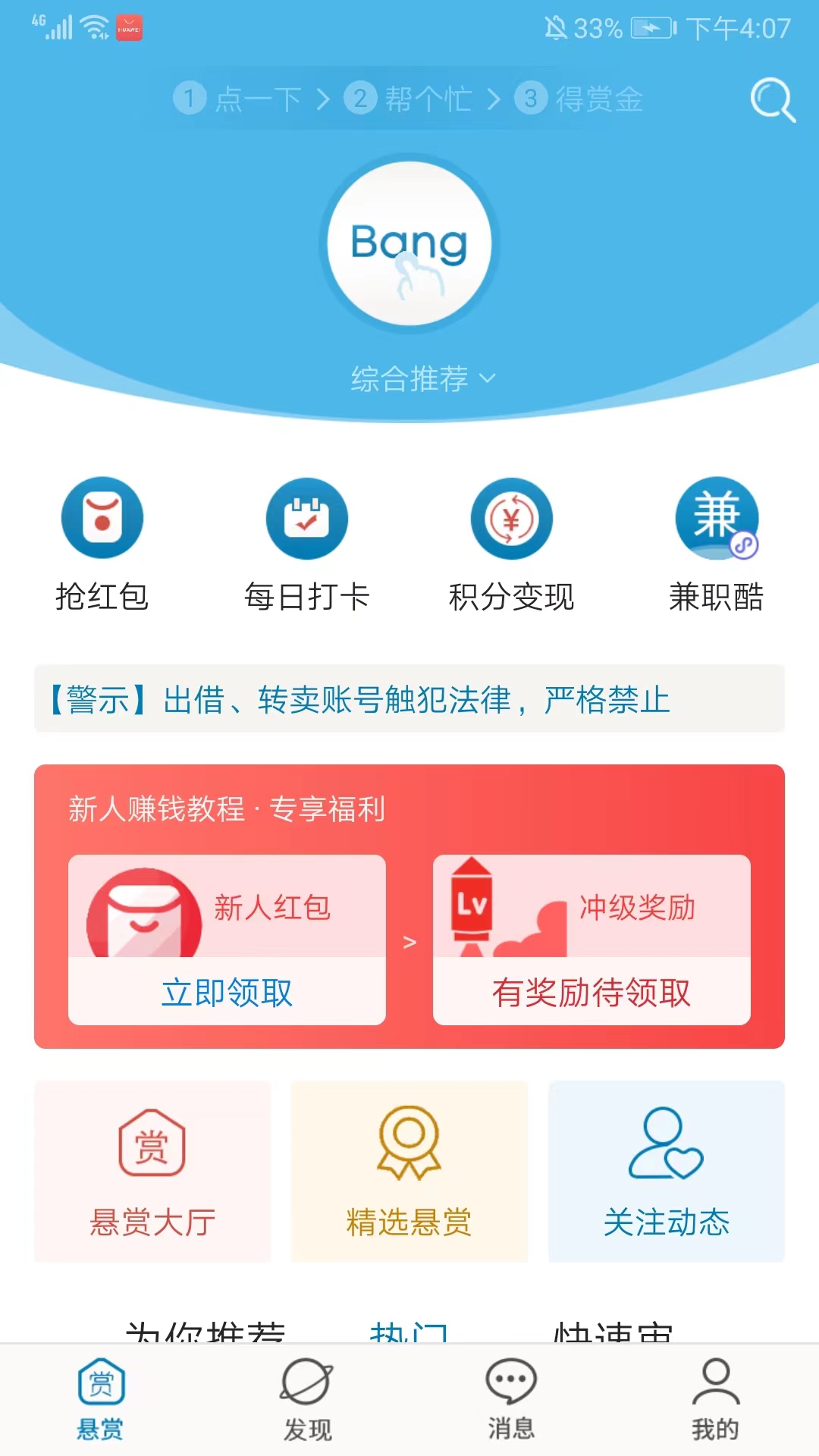 1、打开众人帮2026最新版,进入【悬赏】界面,找到并点击悬赏大厅,