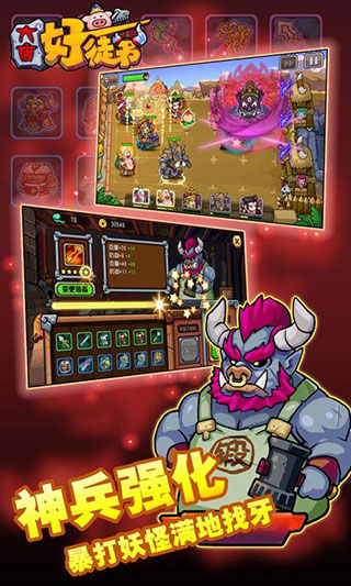 而且,作为西游题材的游戏,大唐好徒弟正版里面肯定有着各种耳熟能详的西游记经典英雄,比如孙悟空、猪八戒、沙悟净等,让你感受最为原汁原味的西游。最为有趣的地方便是在每一个关卡战斗前,都会有一段非常搞笑的无厘头剧情描述做为游戏的欢乐开场,这一举措也算是开启了章回式玩法的先河。怎么样是不是感觉特别的不错?那么就快来下载体验吧。