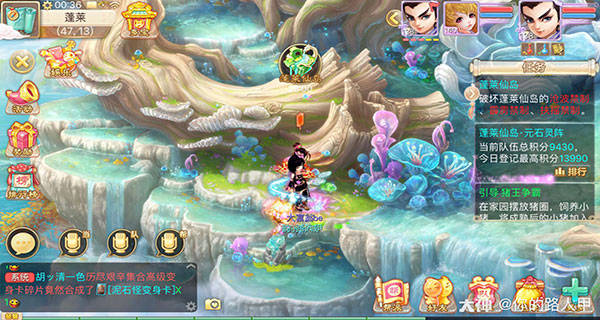 返乡之路有12个路段,每通过一个路段可以获得一次礼包奖励,玩家在移动时需要选择坐骑,坐骑包括大风鸟、仙车和鬼猫等。