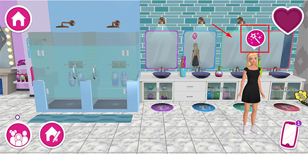 1、进入芭比梦想豪宅游戏,点击芭比图标,即可进入芭比换装页面