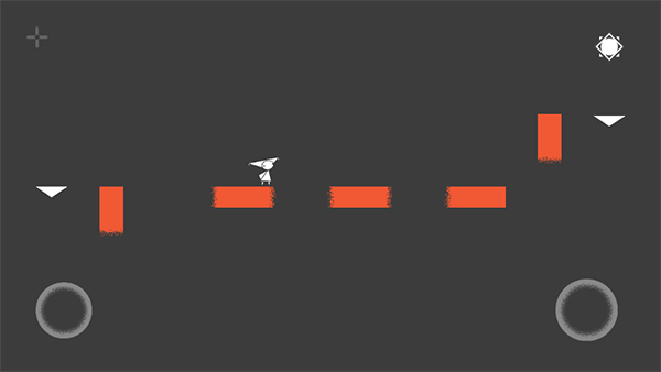 在游戏世界里,只有红和黑两种颜色,包括所有的通关道具都是由这两种颜色组成,游戏玩法很简单,通过改变游戏世界的颜色来控制角色的跳跃前行,在变换其中一种颜色时,另一种颜色所构成的道具也会消失,只有异色的部分显露出来,场景构件也由此在红黑两种的状态下显露出不同的通行属性。