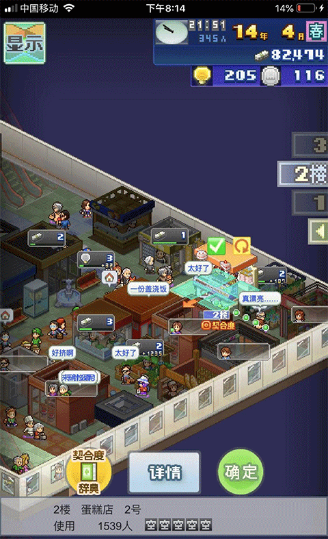 最后是设施类型,在给新楼层进行设施建设的时候要先把电梯弄好,电梯最好是卡在角落里,做不到的话也没有关系,总之要记得楼层先放租金高的商店,贴着墙的商店就面朝外,中间的商店就背对背,这样可以节约比较多的面积,那么肯定会有部分面积是剩余的,这些就用来摆放面积为1的设施就行了。