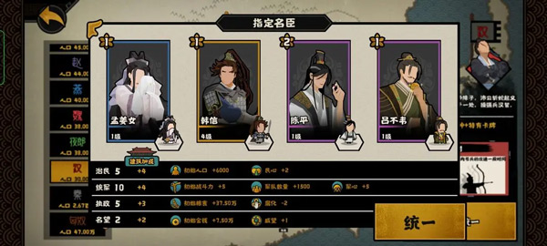 合理搭配名臣可以让我们在游戏里面获得事半功倍的效果,我们不能只看品级不看技能搭配,在不同的时代有些名臣即使低品级 ,也强过大多数的高品级。