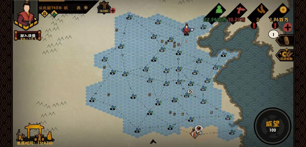 路线图大致如上,利用政策特性,往南加好两个国家,夜郎有香料,南越有钱粮、士子、铁等资源供我们贸易,且两国家能为我们提供30%军团规模的加成。