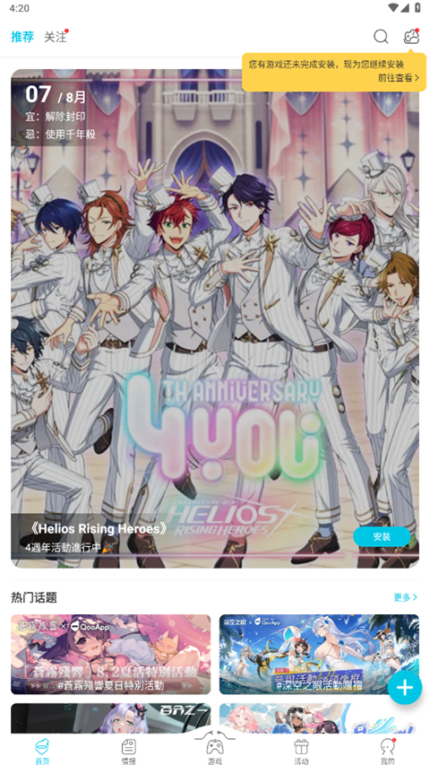 Qooapp是一款专为二次元游戏玩家所打造的游戏社区,通过它,你可以找到所有你想玩的日韩游戏,以及国内一些游戏的国际服,非常适合喜欢二次元手游的玩家。该软件界面清晰直观,拥有最新的游戏资讯推送,汉化资源攻略等一应俱全,以及超值的活动介绍,方便你能够及时参与进来,也让你全方位了解国内外手游市场情况,且操作起来简单实用,在这里,你还可以与朋友们畅谈最有趣的二次元话题,如果你是日韩游戏的忠实玩家,千万别错过了,快来下载玩耍吧。