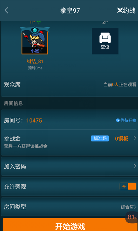 2、然后点击约战,等好友加入游戏就可以一起玩了。