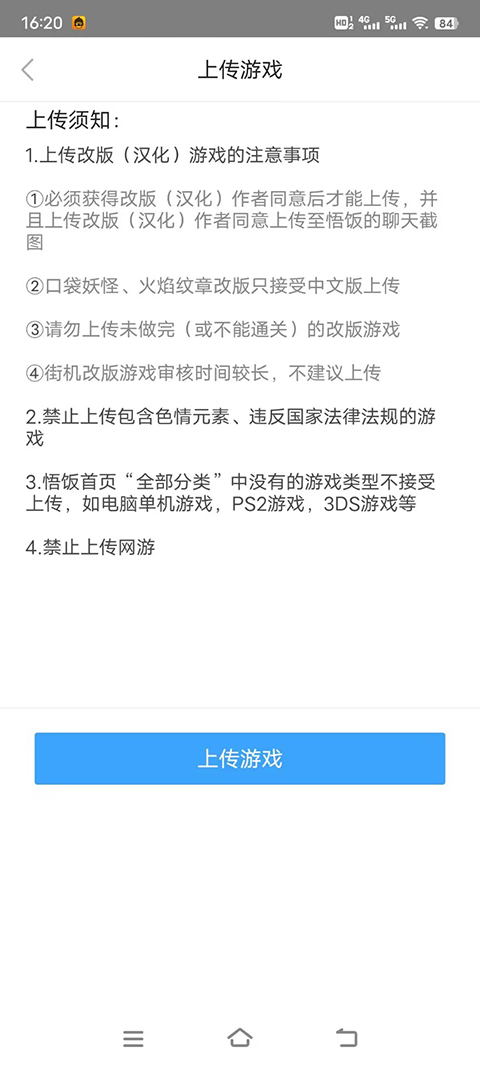 3、悟饭首页“全部分类”中没有的游戏类型不接受上传,如电脑单机游戏,PS2游戏,3DS游戏等