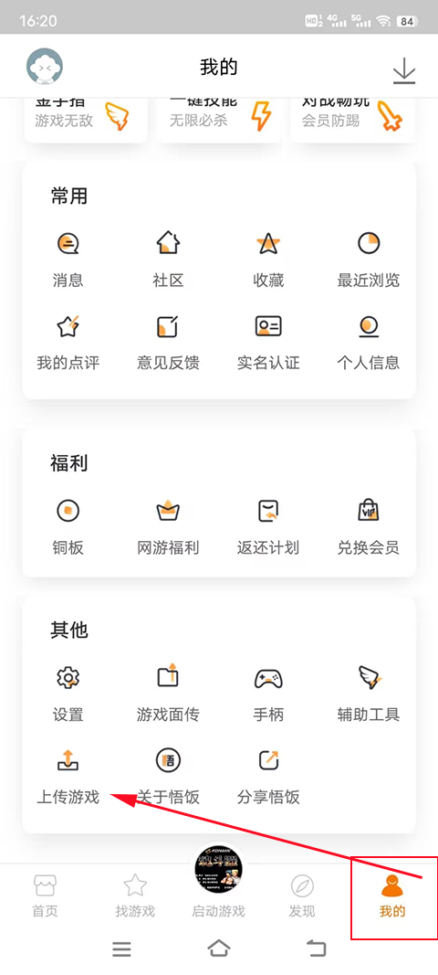1、打开app进入“我的”,点击打开其中的“上传游戏”