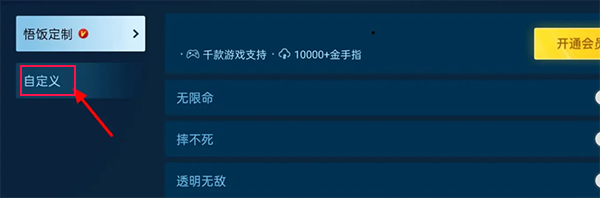 在金手指页面,点击自定义。